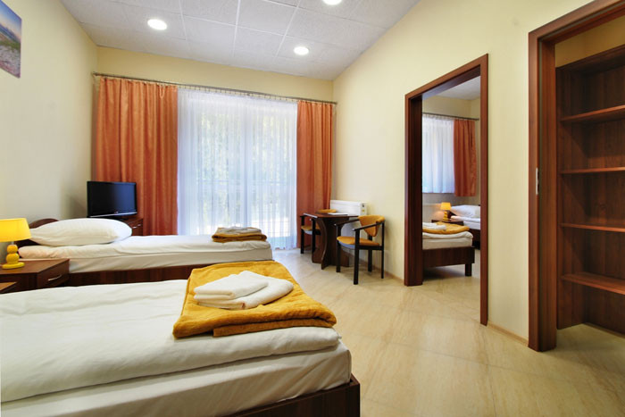 Dysponujemy pokojami 2, 3, 4 osobowymi, wyposażonymi w telewizory, z własnymi łazienkami. Łącznie około 100 miejsc noclegowych. Nasze pokoje wykończone są w wysokim standardzie, w pełni uwzględniają również potrzeby osób niepełnosprawnych. Na terenie ośrodka oferujemy możliwość korzystania z bezprzewodowego Internetu.